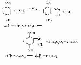 1.以對酚為原料,以硝酸、配制一定濃度的混酸進(jìn)行硝化,反應(yīng)畢,分離廢酸,經(jīng)洗滌蒸餾后以硫化堿還原,后經(jīng)酸析、結(jié)晶、干燥得成品。